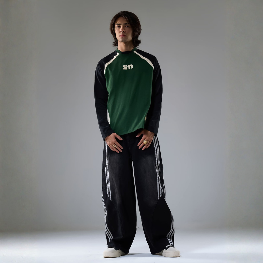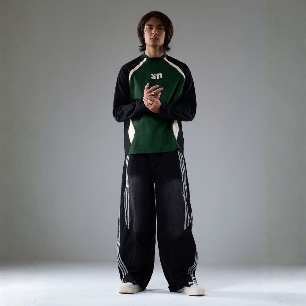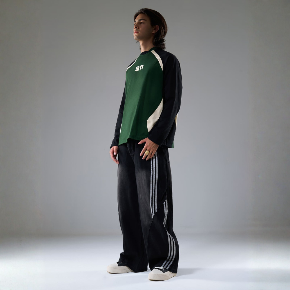 • 细节特色:两个侧袋,独特的斜纹缝线设计,宽松版型